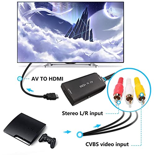 Adattatore RCA a HDMI Convertitore AV CVBS a HDMI Full HD 1080P Video Audio Convertitore con Cavo HDMI e Cavo, Supporto PAL/NTSC per PC PS1/2/3/4 STB VHS WII Xbox TV Blu Ray Camera DVD