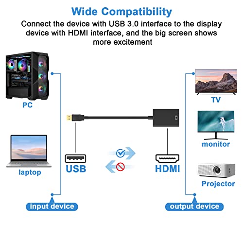 Adattatore USB a HDMI, Adattatore USB 3.0/2.0 a Convertitore Audio Video HDMI per PC/Desktop/Laptop/Proiettore/HDTV, 1080P HD Convertitore di Cavi Grafici Compatibile con Windows XP/7/8/8.1/10/11 Nero
