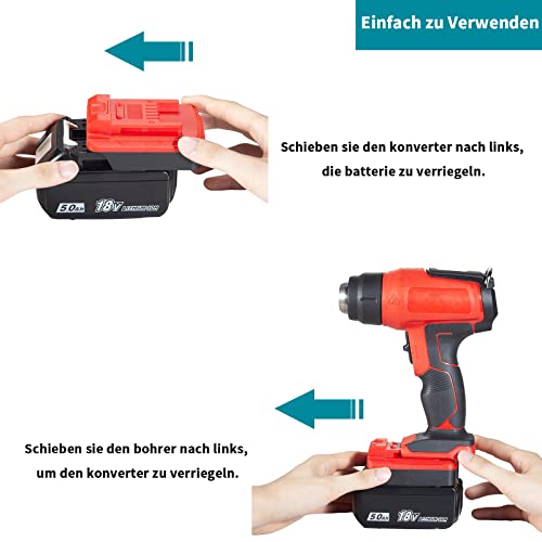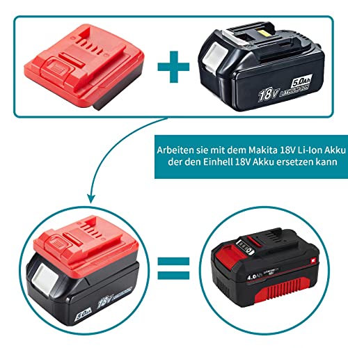 1. Lavorate con la batteria agli ioni di litio Makita da 18 V, che può sostituire la batteria da 18 V di Einhell. Suggerimenti: al momento dell'acquisto, assicurarsi che le batterie per il vostro dispositivo debbano essere inserite obliquamente per funzionare, l'adattatore non si blocca su potatore GE-LC-18 Li, motosega GE-LC-18/25, spargitore universale, tagliasiepi.