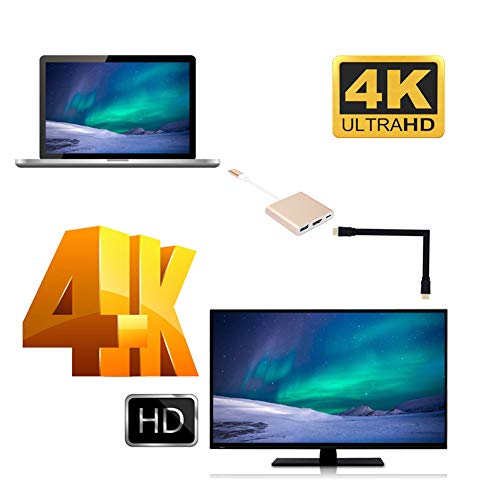 Adattatore di Tipo C, convertitore da 3 a 1 da Tipo C a HDMI, Adattatore Multifunzionale Portatile Shell Metallo con Porta di Tipo C e Porta USB 3.1, Trasmissione 5GP/S accelerata(Oro)