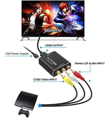 Adattatore RCA HDMI, Convertitore RCA to HDMI,AV a HDMI convertitore Supporta 1080P 60Hz Adatto per PS2/3,Xbox,N64,WII,STB,VHS,VCR,DVD,Ricevitore AV