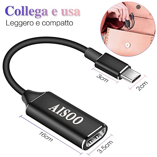 Adattatore da USB C a HDMI 4K per PC, Cavo Convertitore da USB Tipo-C a HDMI Thunderbolt 3 Compatibile con MacBook Pro Surface Go Samsung Galaxy S9 / S8 e altro Adatto per Riunioni di Famiglia