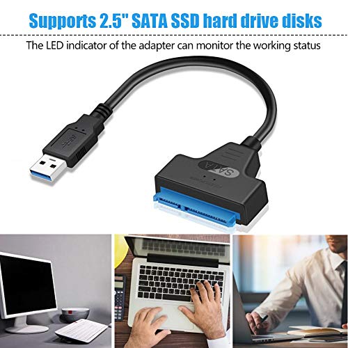 Cavo adattatore USB 3.0 Sata - Cavo adattatore USB SATA Convertitore trasferimento dati SATA a USB3.0 Supporto disco rigido SATA HDD SSD da 2,5 "per laptop desktop - Nero