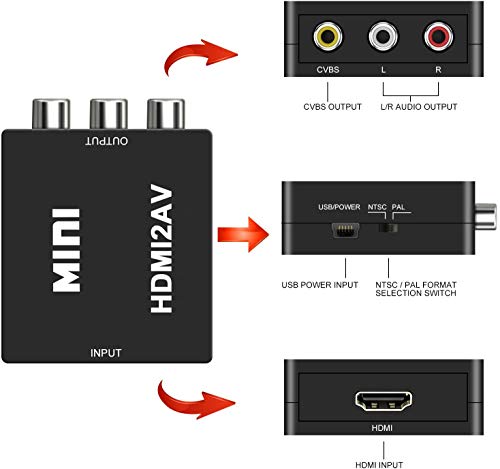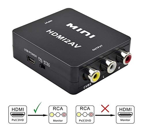 【Convertitore da HDMI a RCA】 convertire il segnale video HDMI in normale segnale CVB (AV) (definizione standard 480i, 576i), disponibile per TV Stick, Roku, Chromecast, Apple TV, PC, laptop, Xbox, HDTV, DVD-Black ecc. Ma non può essere utilizzato come convertitore RCA a HDMI.