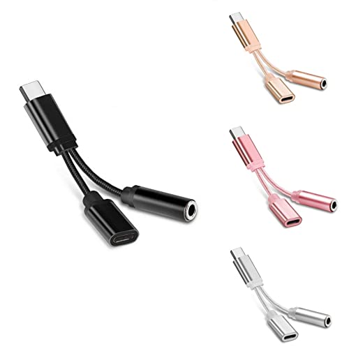 Cavo adattatore 2 in 1 Cavo jack per cuffie e caricabatterie Tipo-C USB-C Adattatore da 3,5 mm per supportare la ricarica e l'uscita audio simultanee (Rosa)