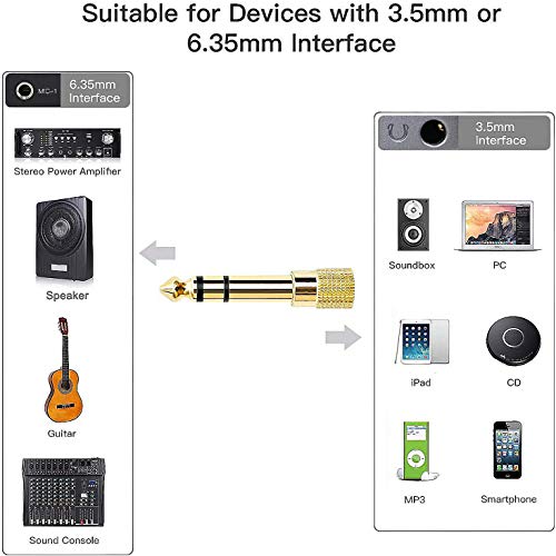 【 Funzione】Adattatore Audio Jack consente di convertire la presa audio 6,35mm in 3,5mm, ideale per collegare smartphone, tablet, iPod o cuffie ai dispositivi audio con Jack stereo da 6,35mm come altoparlante, amplificatore, mixer audio, chitarra, ricevitori AV.