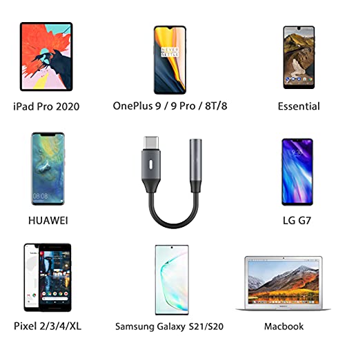 ➤ Dispositivi compatibili : L'adattatore per cuffie Realtek DAC Chip USB di tipo C aggiornato da 3,5 mm a 3,5 mm è compatibile con la maggior parte dei telefoni cellulari, pad, notebook, lettori con porta USB di tipo C, come, OnePlus 7 / 7 Pro / 6T / 6, Google Pixel 2/3/4, Google Pixel 2XL / 3XL / 4XL, Samsung Galaxy NOTE 10 / 10+, Samsung Galaxy S10 / S10 +, Samsung Galaxy Tab S6, Huawei, LG G7 altro.
