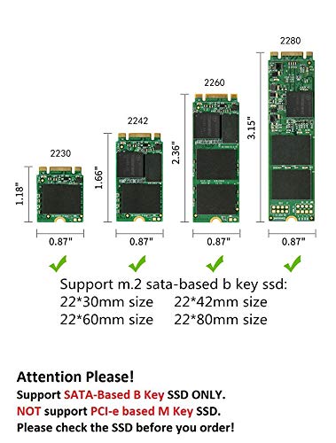 M.2 adattatore adatto per 22 * 30 mm, 22 * 42 mm, 22 * 60 mm, 22 * 80 mm unità SSD NGFF SSD (si prega di confermare il formato prima dell' acquisto)