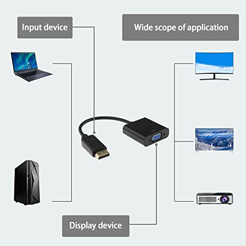 Plug and Play: facile da usare, non è necessario alcun driver o software. L'adattatore DisplayPort a VGA collega un computer, un computer desktop, laptop o qualsiasi altro dispositivo dotato di porta DP a monitor, proiettore, HDTV o qualsiasi altro dispositivo dotato di una porta VGA.