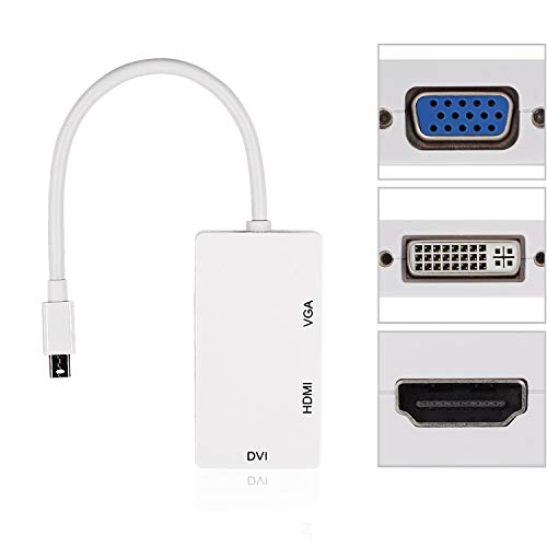 Adattatore 3 in 1 mini DisplayPort DP da Thunderbolt a HDMI, DVI, VGA, per Apple MacBook, MacBook Pro, MacBook Air, iMac, Mac mini, Surface PRO 1 2 3 4, ThinkPad Carbon serie X1, bianco