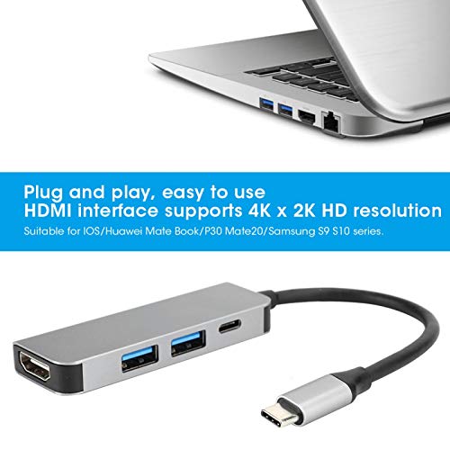 Adattatore Hub 4 in 1 di Tipo C, Hub USB Docking Station Multifunzionale, Hub USB in Lega di Alluminio per IOS / Mate Book / P30 Mate20 / S9 S10