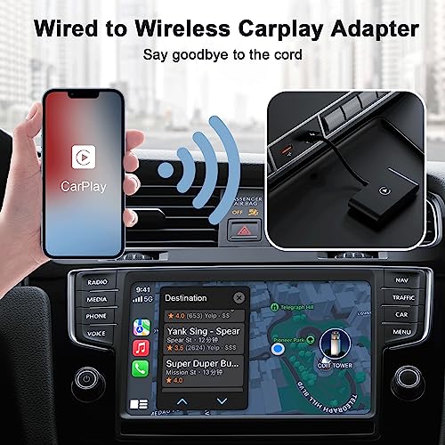 【Adattatore Wireless CarPlay iPhone】Non c'è più bisogno di connessioni cablate. È possibile convertire facilmente Carplay cablato in wireless con l'adattatore CarPlay wireless per iPhone. L'Carplay wireless iPhone non richiede chiudere ripetutamente l'iPhone e collegarlo, ma viene connette automaticamente entro 10-15 secondi. È ancora possibile utilizzare la funzione CarPlay completa e mantenere il funzionamento originale dell'auto, come navigazione, riproduzione musicale, Siri, telefonate,ecc.