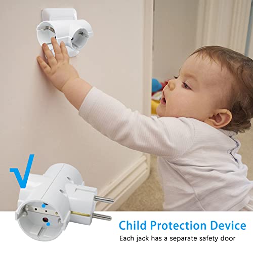 Adattatore Elettrico Multiplo Verticale 2 Pz Prese Tripla Universali, Multipresa Salvaspazio con Protezione Bambini Presa Tedesca Adatto per Casa, Ufficio, Viaggi, Ecc Bianco