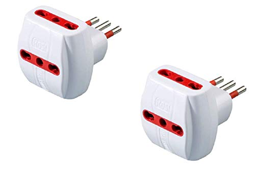 Set di 2 adattatori tripli da spina piccola 10a 2p+t a prese grandi 10/16a