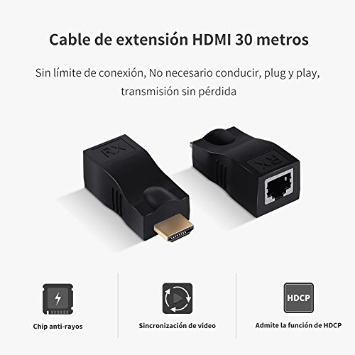 Questo HDMI Extender utilizza solo una di cat5 a/6/7 cavi di estendere la visualizzazione HDMI fino a 30 metri, si rompe la limitazione della lunghezza di la trasmissione tramite cavo HDMI