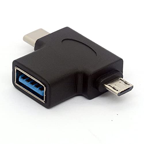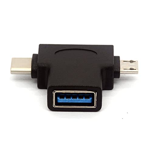 Adattatore USB 3.0 da femmina a micro USB 5 pin maschio e tipo C (USB C) Connettore 2 in 1 USB T Shape OTG