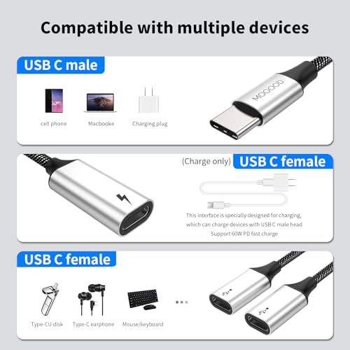 【Super Fit】 Con questo spiltter di tipo C, puoi collegare mouse usb-c, tastiera usb-c, disco flash usb-c, lettore di schede usb-c ecc. al tuo dispositivo USB C. puoi anche collegare l'hard disk usb-c. (è necessario collegare l'alimentazione esterna)
