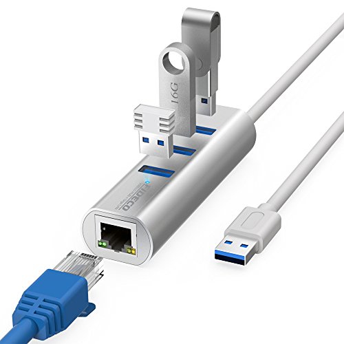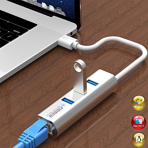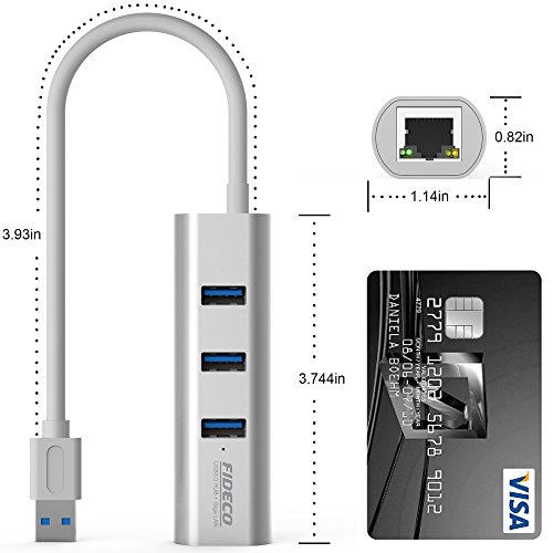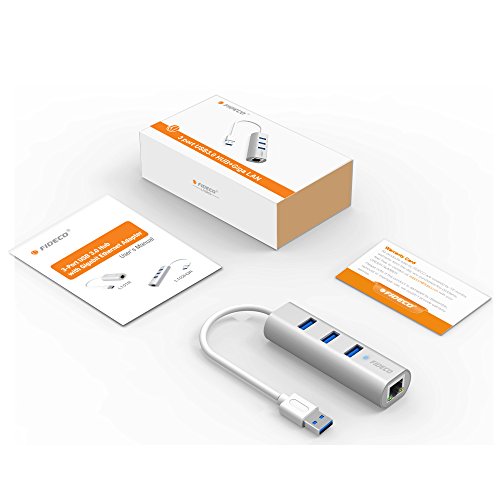 USB 3.0 HUB con Adattatore di Rete, FIDECO Alluminio 3 Porte USB 3.0 HUB a RJ45 LAN 10/100/1000 Gigabit Ethernet per Windows XP, Vista, Win7 / 8/10, Mac OS 10.6 e Versioni Successive, Linux