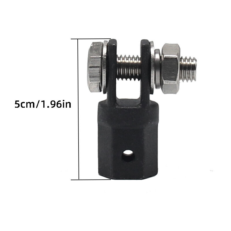 Peso del prodotto: 100 grammi Materiale del prodotto: acciaio al cromo vanadio ID della fessura: 1/2 pollice Diametro esterno della fessura: 13/ 16 pollici Caratteristiche: - Realizzato in acciaio al cromo vanadio resistente ed estremamente durevole - Compatibile con la maggior parte dei martinetti a forbice ad anello o a doppio occhio sul mercato - Facile da usare con gli strumenti seguenti: 1 ) attacco da 1/2"/trapano a percussione/cricchetto o attacco a fessura standard;