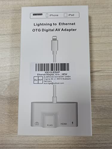 [Adattatore HDMI 4 in 1 migliorato Multi Port HDMI] Questo adattatore 4 in 1 da Lightning a RJ45 Ethernet digitale AV dispone di una porta RJ45, porta HDMI, porta USB e porta di ricarica rapida. Il connettore HDMI e il connettore USB dell'adattatore USB per iPhone possono essere utilizzati anche contemporaneamente. (Nota: se la batteria dell'iPhone è inferiore al 20% o non funziona stabilmente, se si utilizza il nostro adattatore HDMI per iPhone, si prega di collegare un alimentatore alla porta di ricarica per caricare)