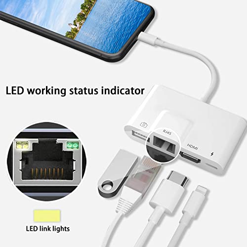Adattatore HDMI per iPhone, lighting HDMI Digital AV 1080P con RJ45 Ethernet LAN Wired Network + porta fotocamera USB + supporto Power Port Flash Drive Mouse Tastiera per iPhone14/13/12/11/X/8/Pad