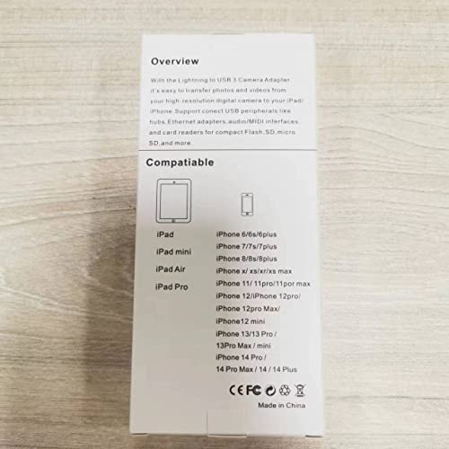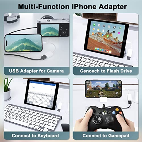 【Dispositivo Compatibile 】 Questo adattatore USB per iPhone è compatibile con iOS 9.2-iOS 16. Compatibile con iPhone 14Pro/14Pro Max/14Plus/13/13 mini/13 Pro/13 Pro Max/12/12 mini/12 Pro/12 Pro Max/11 Pro/11 Pro Max/11/SE (2a generazione)/XS/XS Max/XR/X, i-Pad Pro 12.9/11/Pad Air 3/Pad 9.
