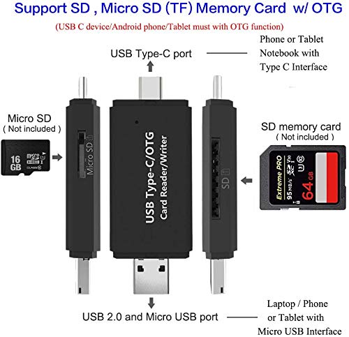 Lettore di schede all-in-1: questo lettore di schede SD è compatibile con tutti i dispositivi tramite tre interfacce tra cui Type-C, Micro USB e USB 2.0. Si tratta di un connettore non solo per smartphone, come Samsung Galaxy S8, Note 8, Huawei, tutti gli smartphone Android con funzione OTG (On The Go).