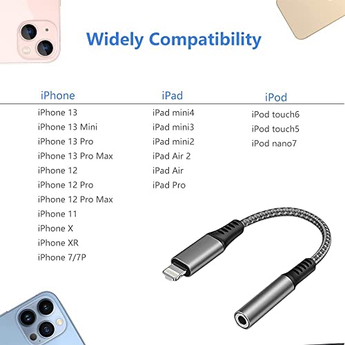 【Completamente Compatibile】 Questo adattatore jack per cuffie è perfettamente compatibile con tutte le cuffie, gli altoparlanti e i cavi AUX da 3,5 mm ed è compatibile con i dispositivi Lightning con iOS 10.3 e versioni successive, inclusi iPhone 13/ 13 Pro/ 13 Pro Max / 13 Mini/ 12/ 11/X/8/7/iPad/iPod.