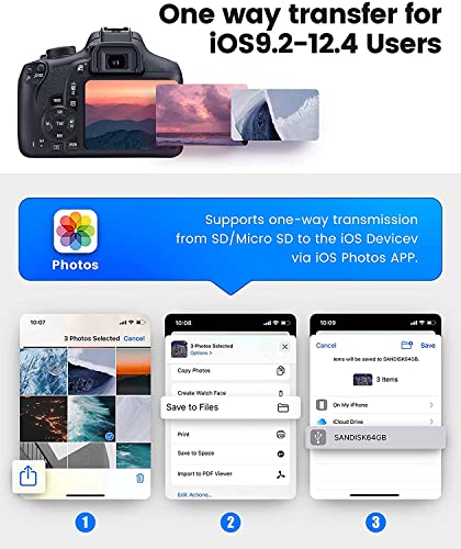 2-in-1 SD & TF Card Dongle: Questo lettore di schede Lightning a SD supporta la scheda di memoria SD e micro SD da fotocamera digitale, fotocamera sportiva, drone, macchina fotografica di gioco Trail Camera. Scarica facilmente foto o video da schede SD direttamente su iPhone o iPad e condividi momenti meravigliosi sui social media sempre e ovunque.