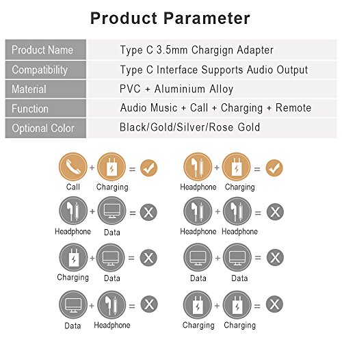 Compatibilità: USB C a 3.5 mm adattatore permette di collegare la vostra cuffia da 3.5 mm per i dispositivi USB C per raggiungere l' audio di gioco e vivavoce. Design perfetto per il tuo Huawei Mate 10 Pro, è adatta anche per martello dado Pro/One plus/le 2/le 3 Pro/Xiaomi Mi 6/Mix 2/Note 3 che hanno un jack audio da USB tipo C. Supporta uscita carica a 1.5 A max, 48 kHz, 24 bit Digital originale