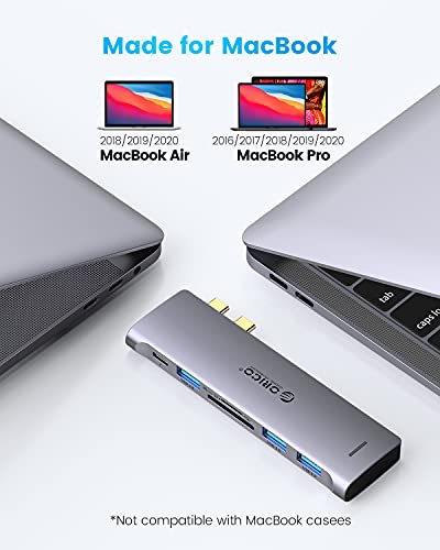 Adattatore multiporta 6 in 2: l'hub adattatore USB per MacBook di ORICO estende il tuo computer portatile Mac a 3 x USB 3.0 + Thunderbolt 3 + slot lettore di schede SD/TF. Senza cavi e senza design che rende la connessione più compatta.