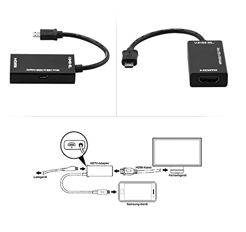 Compatibile con tutti i produttori di smartphone e tablet con connettore micro USB 2.0 come Samsung, Sony, Nokia, HTC, Huawei, LG, Asus, Lenovo, Cubot, Wiko ecc. Importante: si prega di collegare il cavo MHL a una fonte di alimentazione esterna tramite il cavo USB in dotazione. Alimentazione (5 V DC) tramite USB 2.0