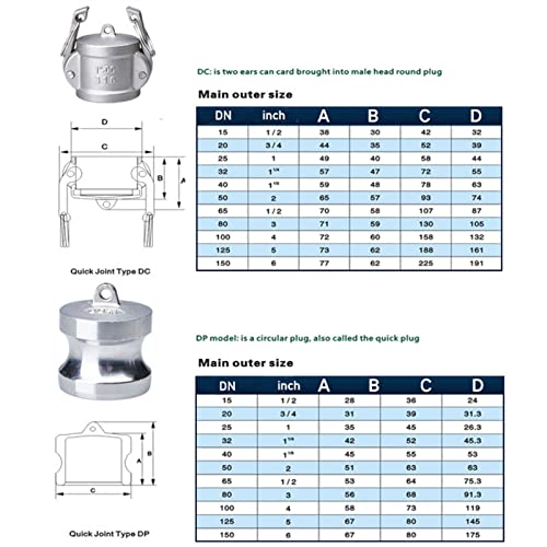 KHJK. Adattatore di Montaggio in camlock in Acciaio Inox 304 Mpt FPT. Barb Seconnessione Rapida for Accessori for Pompe for Tubi Flessibili (Color: DC, Thread Specification: 2inch)