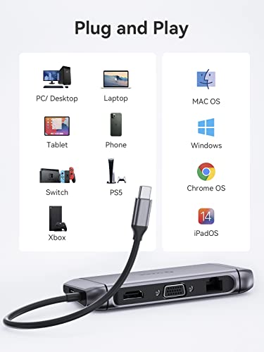 Hub USB C Adattatore Multiporta, QUUGE Docking Station 9 in 1 per Laptop con 3 USB 3.0, 4K HDMI, VGA, Porta Ethernet, SD/TF, PD, per Mac OS, Windows, Android Sistema