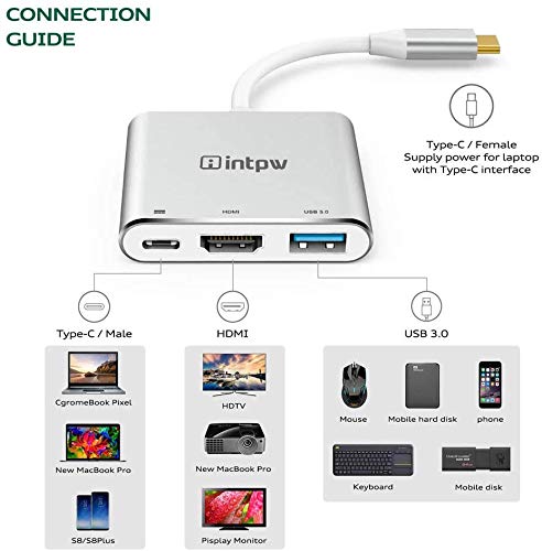 Alta velocità, alta definizione: l'adattatore intpw da USB tipo C a HDMI supporta fino a 1080p a 60Hz o 4K UHD (3840x2160) a 30Hz consentendo audio e video chiari e supporta velocità di trasferimento dati di 5 Gbps con porta USB 3.0.