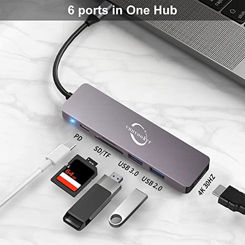 Hub USB C,Adattatore Multiporta Vunvooker 6in1 con 100W PD,Uscita HDMI 4K,SD/TF,Da USB-C a USB 3.0/USB 2.0,Espansione USB-C per laptop di tipo C,Dongle per MacBook Pro/Air,iPad,iMac,XPS,Notebook