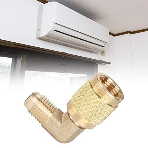 Adattatore in Ottone R410 Filetto Maschio da 1/4 a Filetto Femmina 5/16 Connettore Adattatore 90 ° Dispositivo di Raffreddamento condizionatore d'Aria Accessorio 1,5x1,2 Pollici