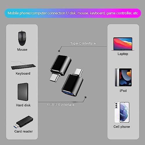 Super Compatibilità: Adattatore USB a USB C è ampiamente utilizzato negli smartphone e in vari dispositivi digitali. Adattatore UAB Type C collega i tuoi dispositivi usb a (tastiera, mouse, unità flash usb, lettore di schede, controller di gioco) al tuo telefono e tablet usb c e altri dispositivi usb c.