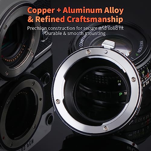 Compatibile con (1) lenti: Pentax K PK MOUNT, (2) telecamere: Olympus E-P1, E-P2, E-P3, E-PL1, E-PL2, E-PL3, E-PM1, (3) Panasonic DMC-G1, DMC-G2, DMC-G3, DMC-GH1, DMC-GH2, MC-GF1, DMC-GF2, DMC-GF3, DMC-GF3, DMC-GF3, DMC-GF3, DMC-GF3, DMC-GF1, DMC-GF3, DMC-G7, DMC-G1 0.