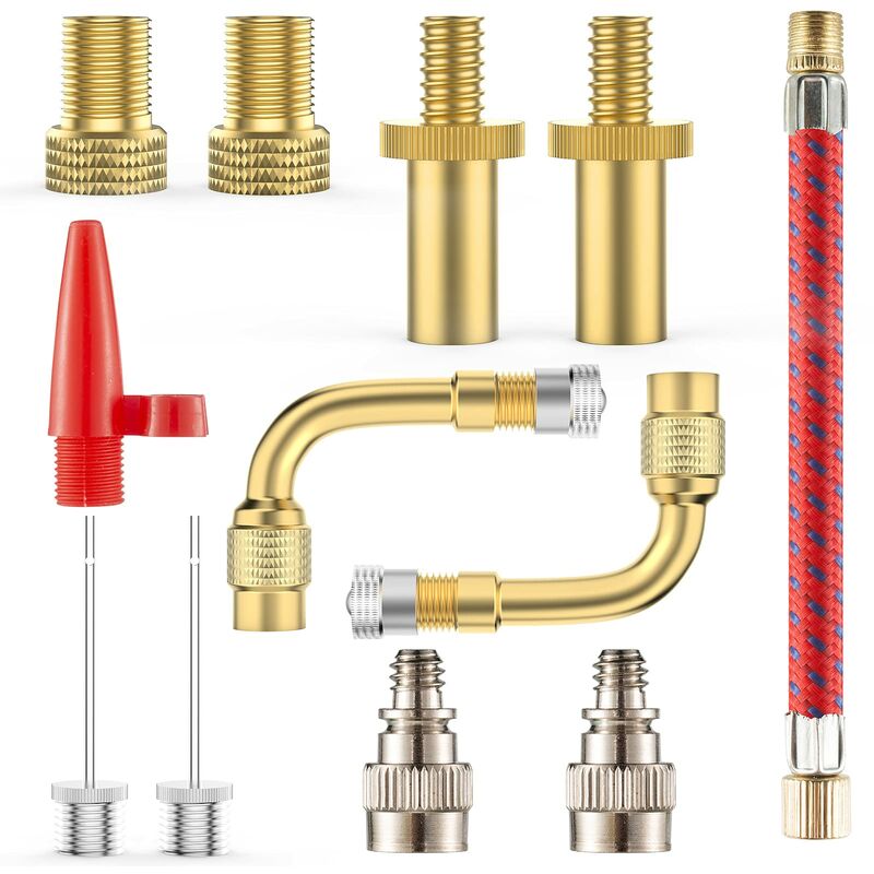 Colore come mostrato Dimensioni: 8,8 x 6,1 x 1,3 cm Peso: 70 grammi Materiale Materiale in ottone di qualità: Il set di adattatori per valvole per bicicletta è realizzato in ottone e plastica di alta qualità, resistente alla corrosione, non si sbiadisce facilmente dopo un uso a lungo termine, durevole, di lunga durata e ha filettature e gomma flessibile per evitare perdite.Molti usi: ideale per lo sport palloni, gommoni e giochi gonfiabili. Si adatta alla maggior parte delle pompe per biciclette. Valvola Dunlop (DV), valvola Presta, valvola Lightning (BV), valvola Sclaverand (SV), valvola Presta inserita => valvola Schrader/auto (AV) Valvola di estensione a gomito a 90 gradi in ottone, valvola Schrader / valvola americana, Viene fornito con tappo e core, che è adatto a tutte le autovetture, autocarri leggeri e pesanti, motocicli e veicoli ricreazionali con valvole per pneumatici standard. L'estensione semplifica il controllo e il gonfiaggio dei pneumatici doppi, consentendo di