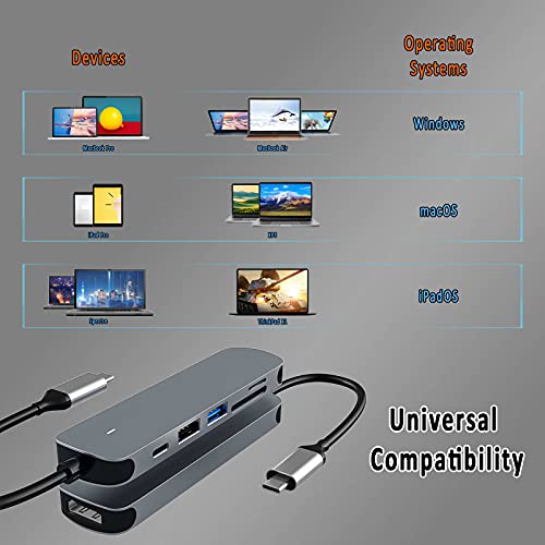 Adattatore multiporta USB C: questo hub USB C supporta il collegamento di una porta USB-C dei dispositivi con HDMI 4K @ 60Hz, una porta di ricarica 100 W, un lettore di schede SD/TF e due porte USB-A. In questo modo garantisce uno spazio di lavoro compatto sulla scrivania