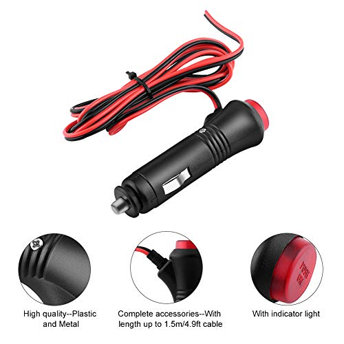 ✔ 【Specifica tipo】: Spina accendisigari maschio, 12V-24V, uscita polvere 60W, fusibile 10A, lunghezza cavo 1,5 m / 4,9 piedi. L'accendisigari è ampiamente utilizzato per collegare i prodotti elettrici dell'auto. E questa è una parte standard, si applica anche a quasi tutti i modelli della presa accendisigari, utilizza altri dispositivi con un terminale.