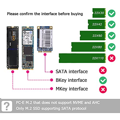ADATTATORE: questo adattatore M.2 NGFF a SATA è adatto per SSD M.2 NGFF di diverse lunghezze, tra cui 3 cm/1,2 pollici, 4,2 cm/1,7 pollici, 6 cm/2,4 pollici, 8 cm/3,1 pollici.