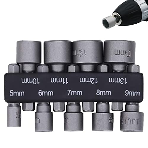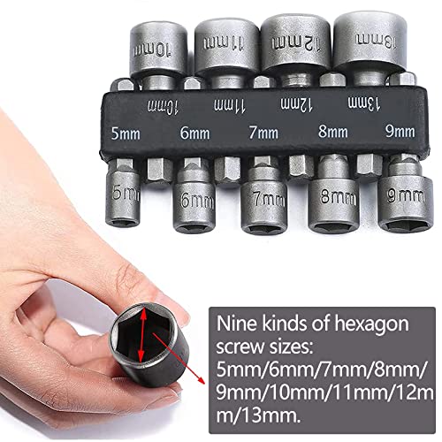 Adattatore Per Punta Dadi 9 Pezzi 5-13mm Set Di Chiavi A Bussola Per Dadi Codolo Esagonale Adattatore Punte Trapano Socket Set Per Avvitatore Bussole Esagonali Per Trapano Avvitatore A Batteria