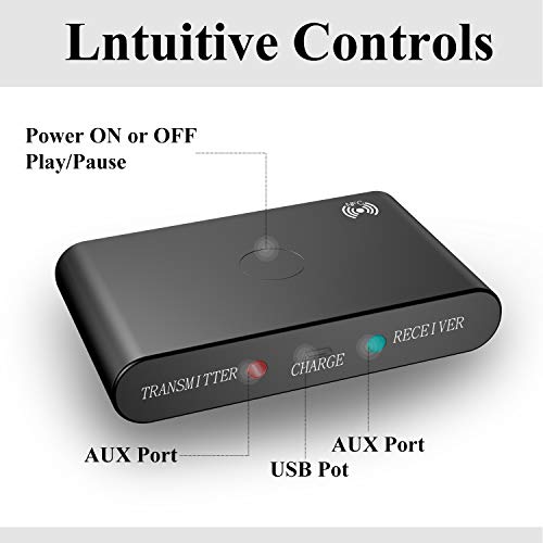 【Trasmettitore e Ricevitore 2-in-1 Bluetooth】 La modalità trasmettitore riproduce audio wireless da una TV o da un impianto stereo domestico non dotato di tecnologia Bluetooth alle tue cuffie o altoparlanti Bluetooth. La modalità ricevitore riprodurrà audio dal tuo smartphone, tablet o computer al tuo stereo, altoparlante o cuffia grazie alla tecnologia Bluetooth.Inoltre, questo ricevitore ha la funzione NFC e può essere collegato direttamente a un telefono cellulare con NFC.