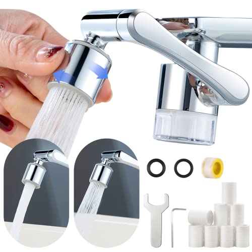 Rubinetto multifunzione girevole a 1080° con filtro dell'acqua: l'uscita dell'acqua del prodotto è dotata di cotone PP per filtrare efficacemente le impurità nell'acqua. Per migliorare la sicurezza dell'acqua potabile e la salute dell'acqua potabile, l'aeratore può essere smontato e pulito in caso di necessità e il filtro in cotone PP può essere sostituito