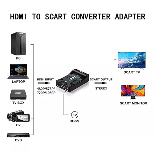 Ampia compatibilità: il convertitore da HDMI a SCART è compatibile con la maggior parte dei dispositivi, PS4/PS3/laptop/Apple TV/Sky HD Box/Blu-ray lettore DVD HD in TV, proiettore, monitor del computer, ecc. Ingresso SCART.