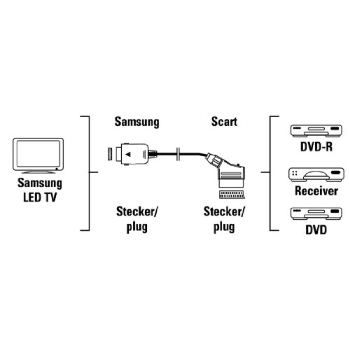 Contenuto della confezione: 1 adattatore scart Hama per TV LED Samsung, lunghezza: 1 x 0 cm.