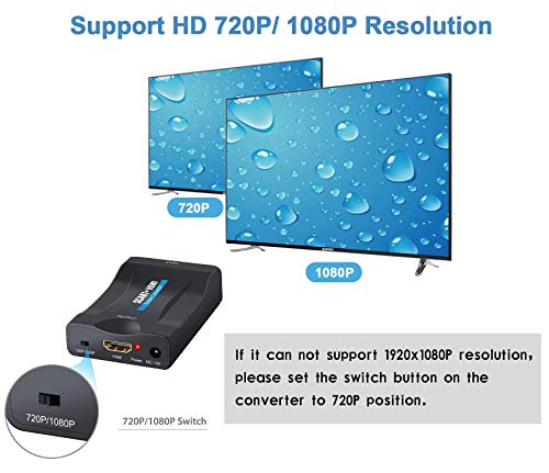 Ampia compatibilità: l'adattatore da scart a HDMI è ampiamente usato per lettore DVD, set-top box, Sky o altri dispositivi con porta di uscita scart per visualizzare su HDTV, monitor o proiettore con porte di ingresso HDMI. Supporta PAL, NTSC3.58, NTSC4.43, SECAM, PAL/M, PAL/N standard TV in ingresso.