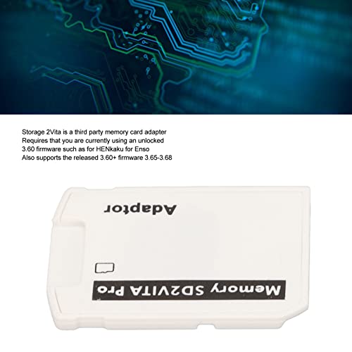 ADATTATORE PER SCHEDA DI MEMORIA: l'adattatore per schede 2Vita è un adattatore per schede di memoria di terze parti che richiede l'utilizzo del firmware 3.60 sbloccato come per HENkaku per Enso e supporta anche il firmware 3.60+ rilasciato 3.65‑3.68.
